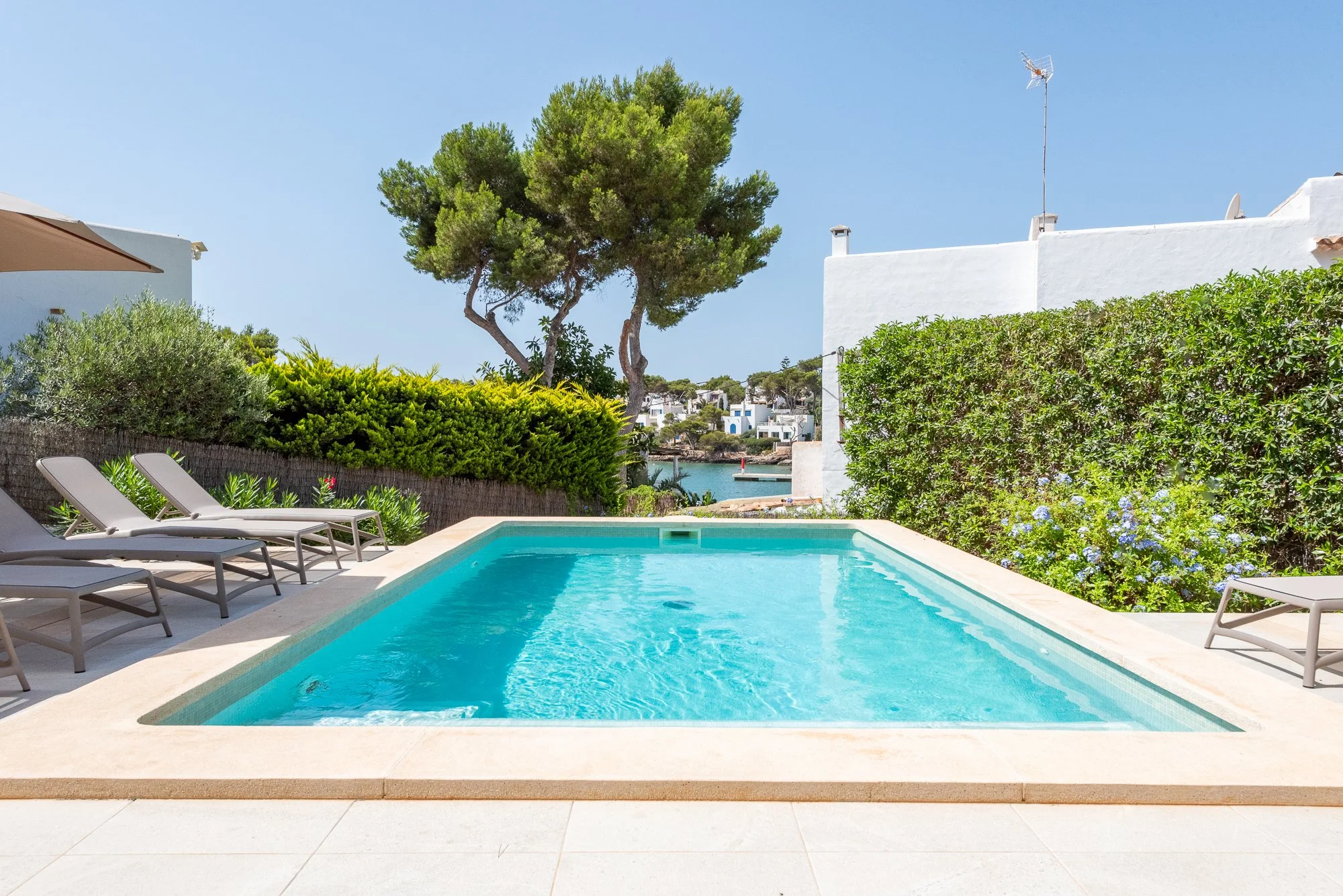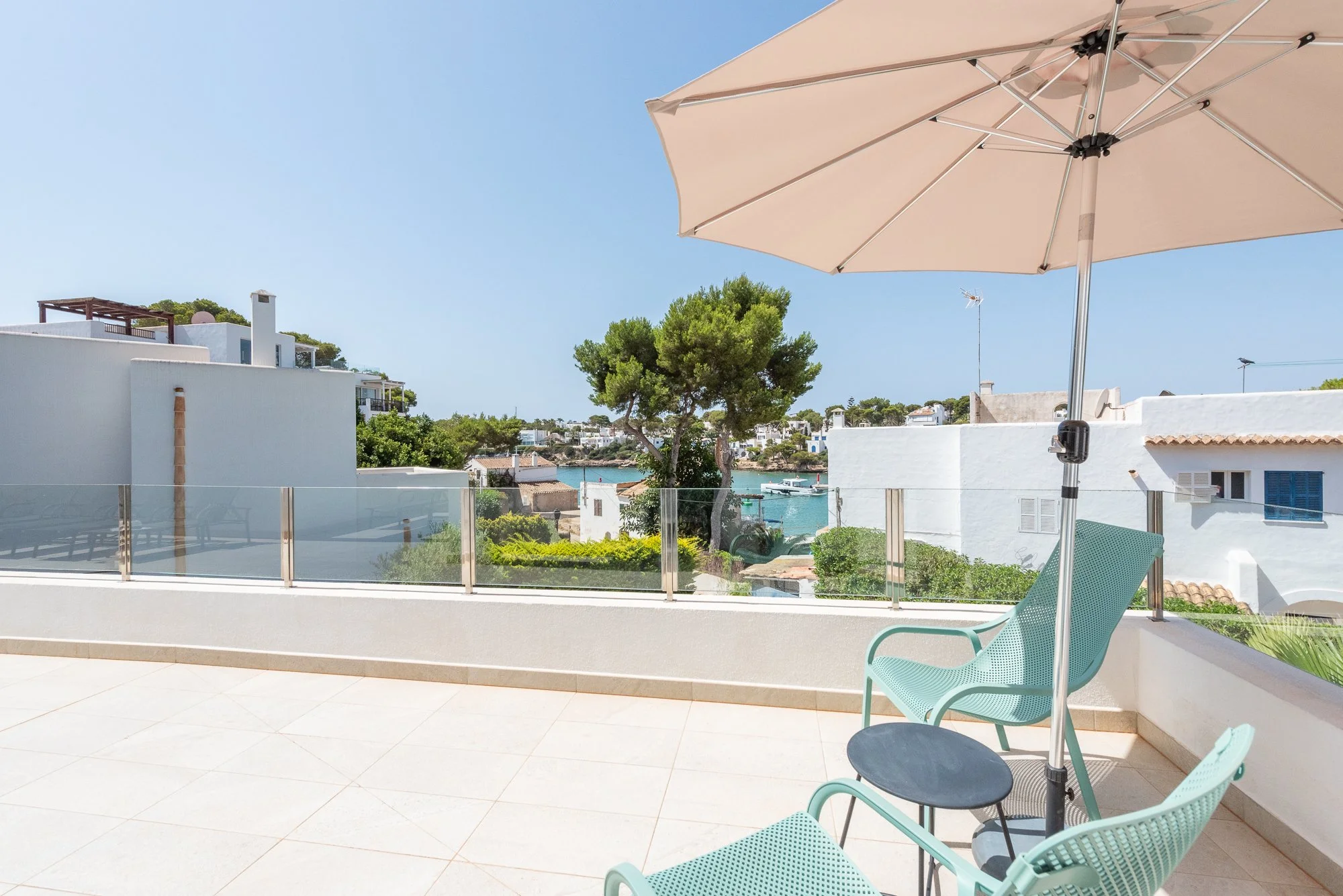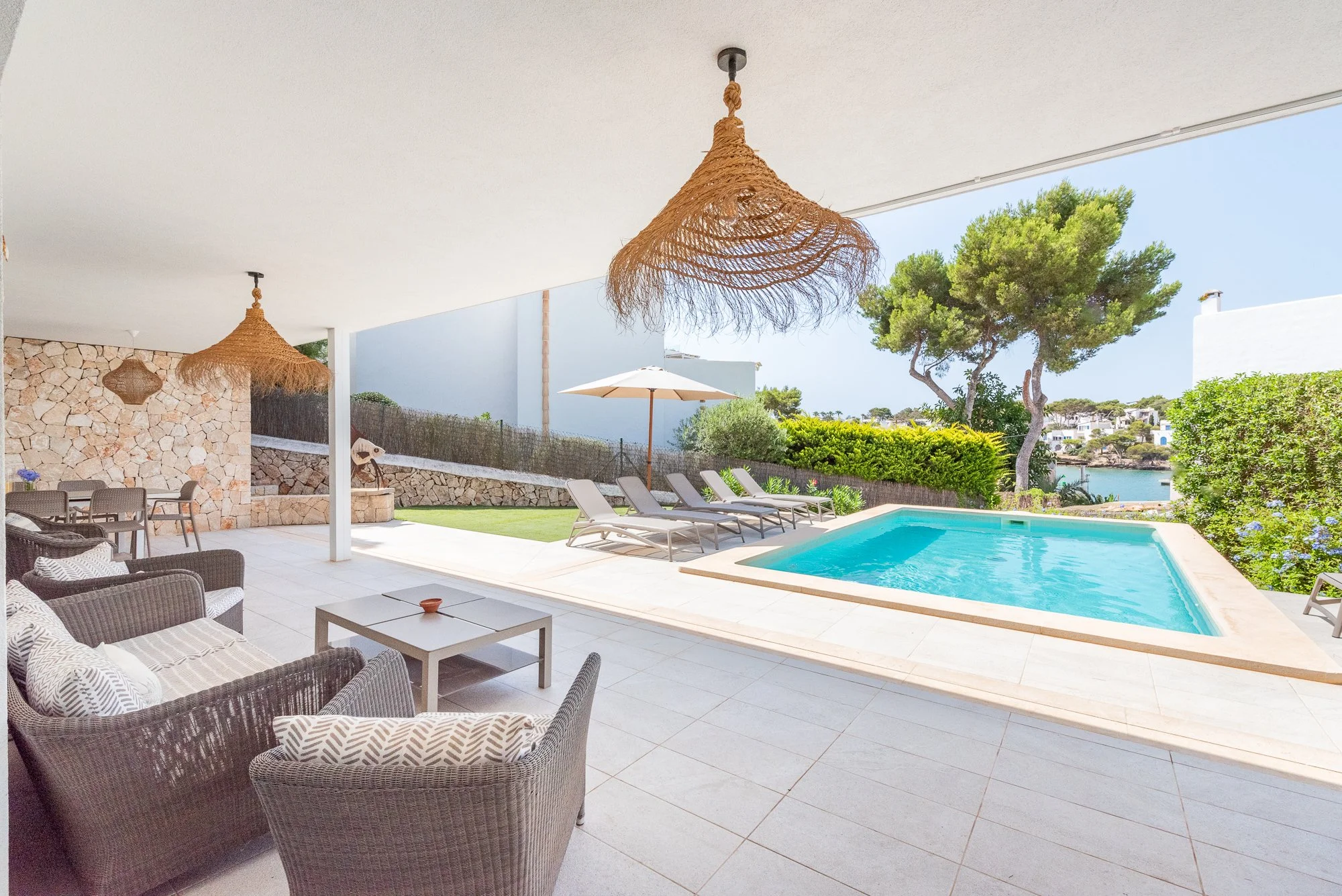 Sofas shaded from the sun to kick back and enjoy the glorious views of Cala d’Or estuary.