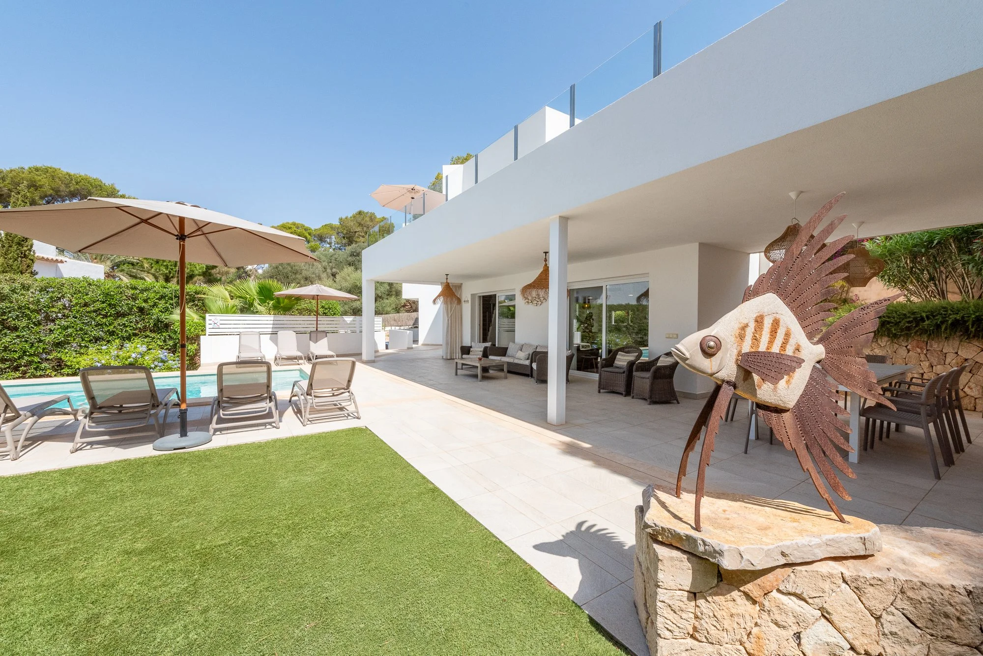 Although blissfully quiet and tranquil, Villa ESTURA is less than a 10 minute walk to all amenities such as beaches, Cala d'Or town and the popular marina with its many restaurants and stunning boats, so relax, unwind and immerse yourself in this slice of paradise.