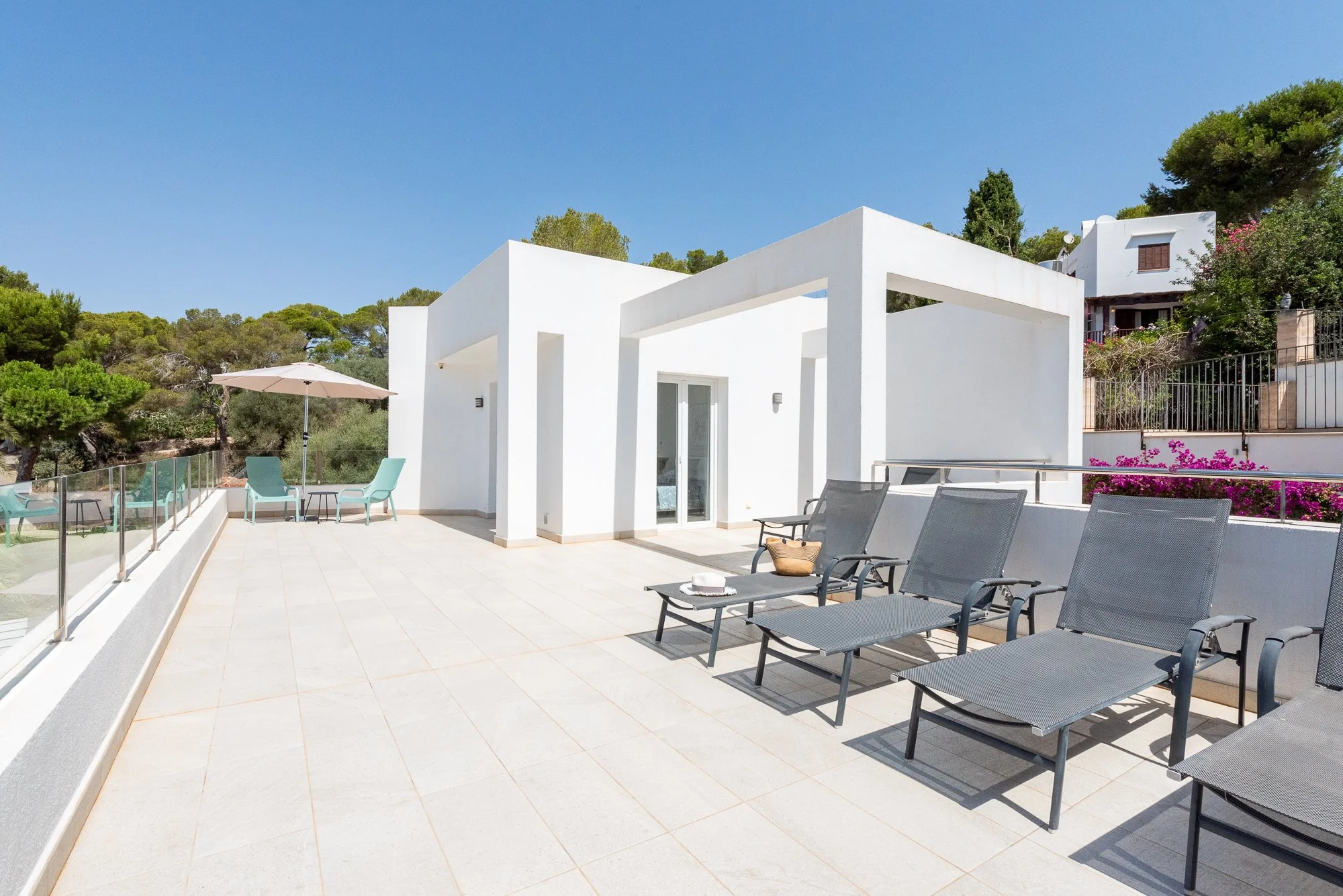 Sun loungers on the upper terrace